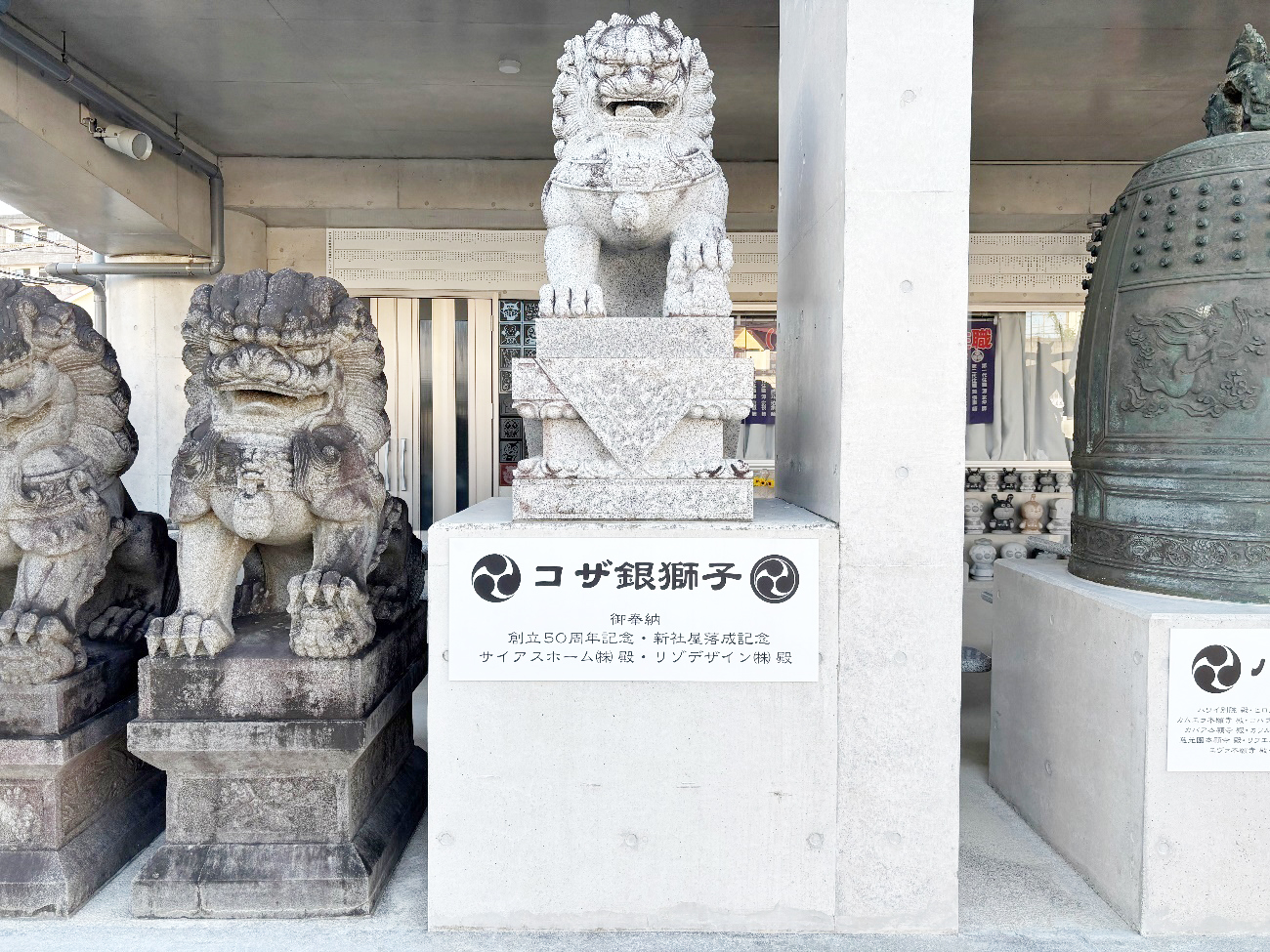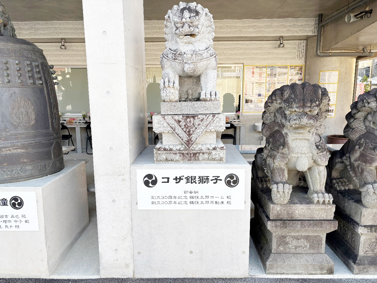 球陽寺(コザ山 ライカム院 球陽寺〈コザ本願寺《沖縄市》〉)には、『琉球・沖縄学』の風徳・土徳として、代々、石像『コザ金獅子』・『コザ銀獅子』の寺宝が伝承されています。